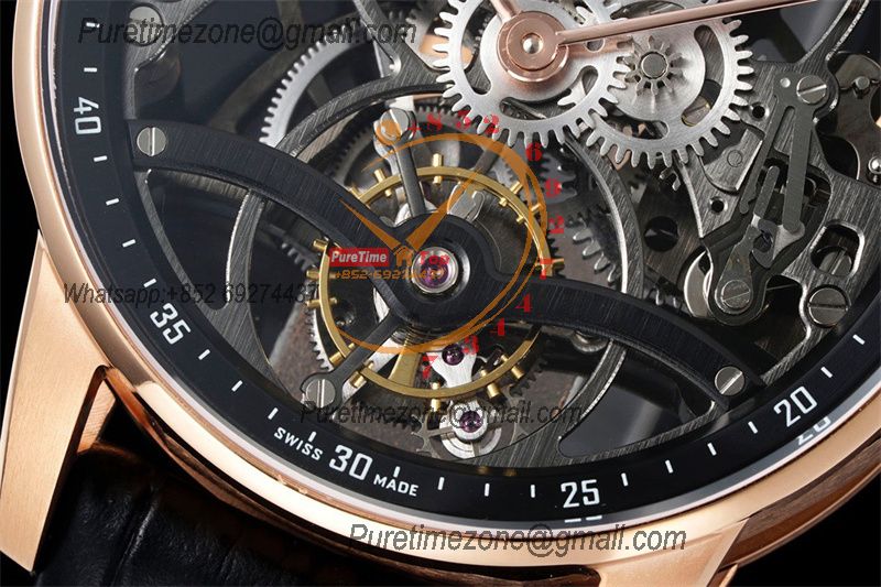 Code 11.59 26600 Tourbillon Automatic Mens Watch APPF Best Edition RG Black Skeleton Dial Black Leather Strap CHS