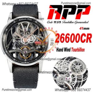 Code 11.59 26600 Tourbillon Automatic Mens Watch APPF Best Edition Black Skeleton Dial Gray Nylon Strap CHS $1,575.00 $1,050.00
