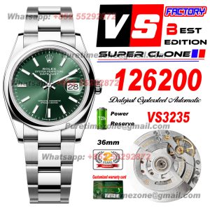 Be the first to review “Datejust 126200 Wimbledon Automatic Mens Watch Super Clone VSF 36 Blue Dial 904L Steel Oyster Bracelet CHS VS3235” Cancel reply