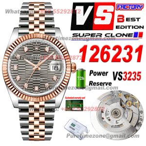 Datejust 126231 Wimbledon SS/RG Automatic Mens Watch Super Clone VSF 36 Fluted Gray Dial 904L Steel Jubilee Bracelet CHS VS3235 $850.00 $700.00