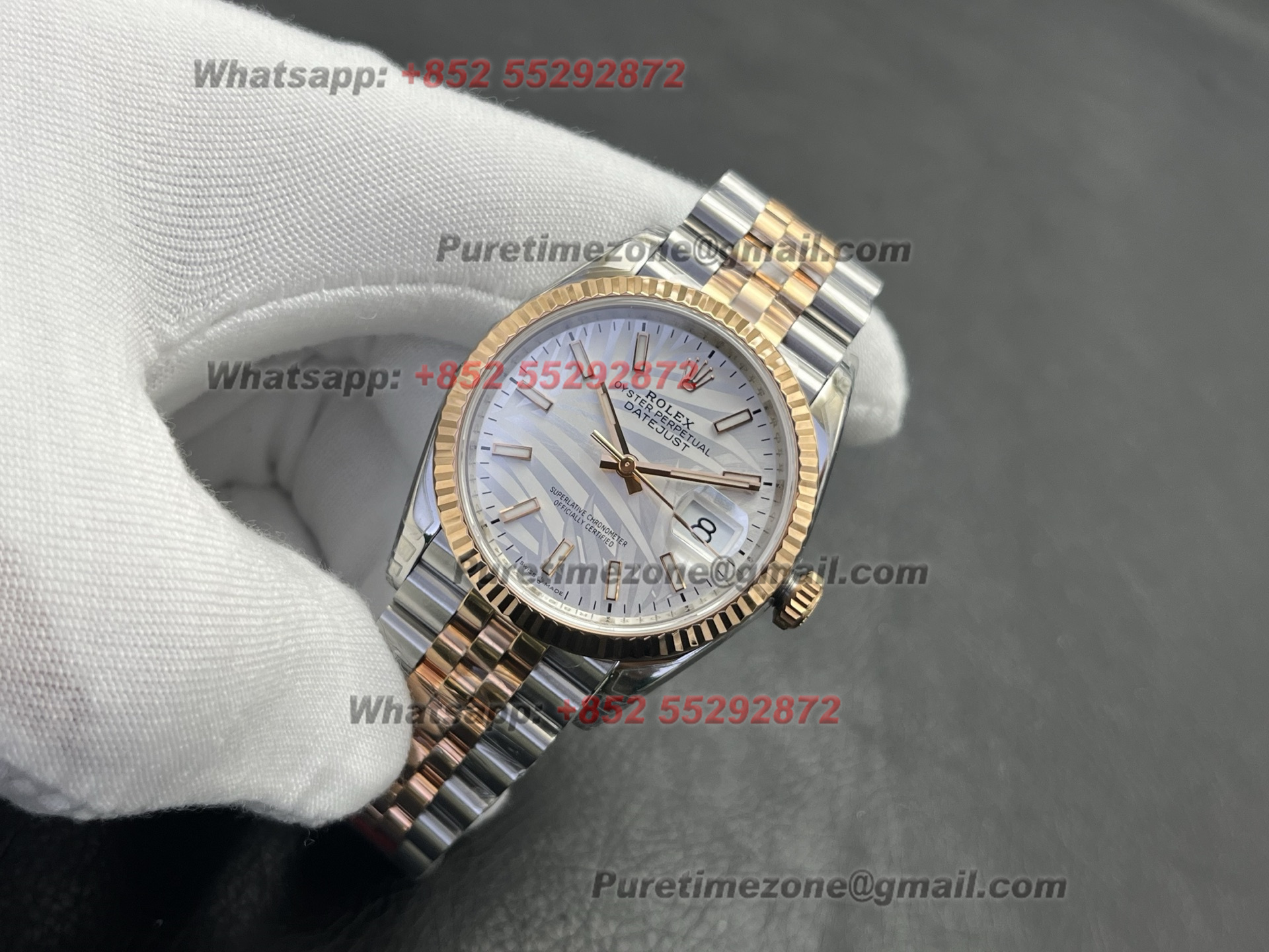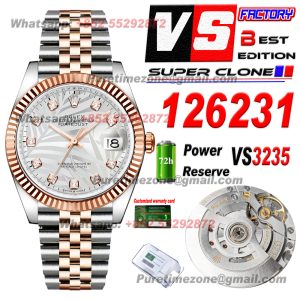 Home Rolex Datejust Datejust 126231 SS/RG Automatic Mens Watch Super Clone VSF 36 Palm Motif Silver Dial 904L Steel Jubilee Bracelet CHS VS3235