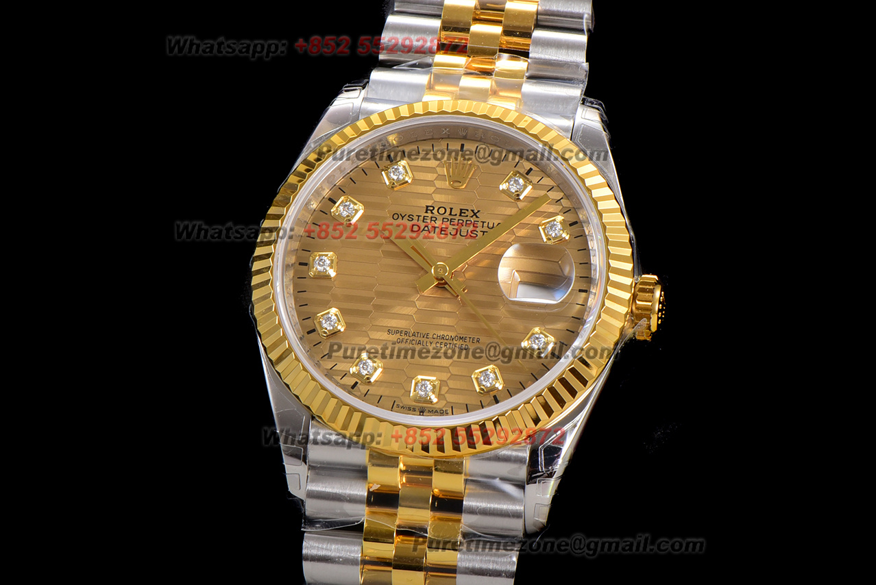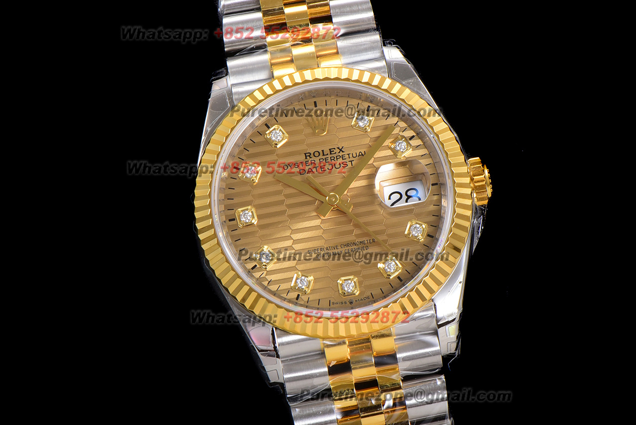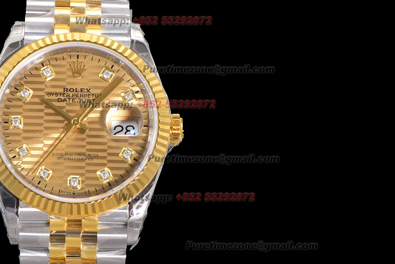 Datejust 126233 SS/YG Automatic Mens Watch Super Clone VSF 36 Fluted Gold Dial 904L Steel Jubilee Bracelet CHS VS3235