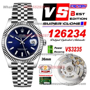 Be the first to review “Datejust 126234 Automatic Mens Watch Super Clone VSF 36 Black Dial 904L Steel Jubilee Bracelet CHS VS3235” Cancel reply