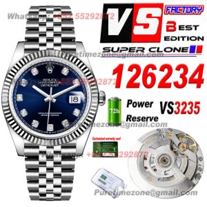 Be the first to review “Datejust 126234 Automatic Mens Watch Super Clone VSF 36 Fluted Blue Dial 904L Steel Jubilee Bracelet CHS VS3235” Cancel reply