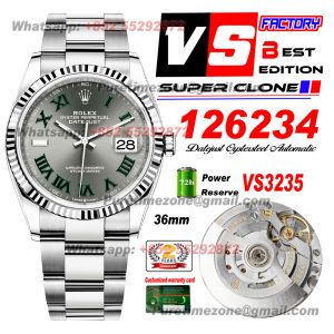Be the first to review “Datejust 126234 Automatic Mens Watch Super Clone VSF 36 Green Dial 904L Steel Jubilee Bracelet CHS VS3235” Cancel reply