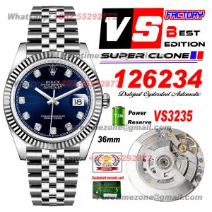 Be the first to review “Datejust 126234 Automatic Mens Watch Super Clone VSF 36 White Dial 904L Steel Oyster Bracelet CHS VS3235” Cancel reply