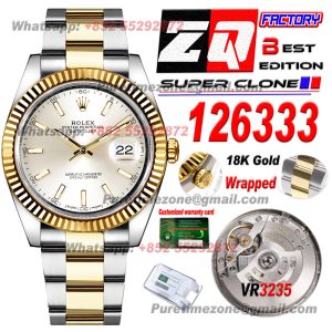 DateJust 126333 41 SS/YG Automatic Mens Watch 18k Gold Wrapped Super Clone ZQF V2 Silver Stick Dial Oyster Bracelet VR3235