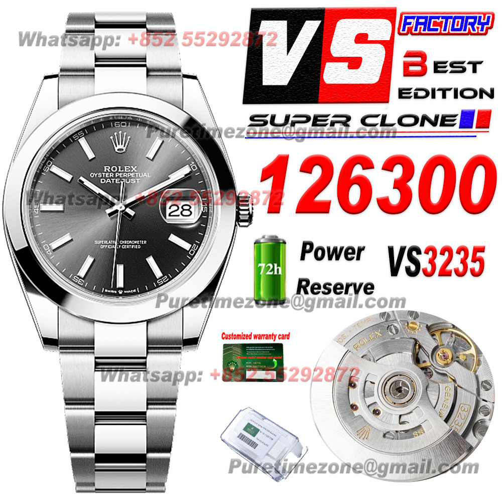 Datejust 126300 Automatic Mens Watch Super Clone VSF 41 Gray Dial 904L Steel Oyster Bracelet CHS VS3235