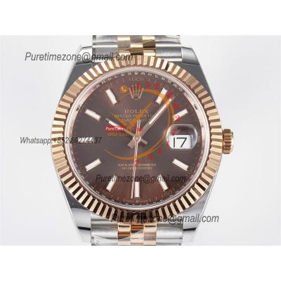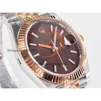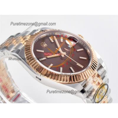 EWF Datejust 41 126331 A3235 Automatic Mens Watch Tow Tone RG Brown Stick Dial SS Jubilee Bracelet Best Edition