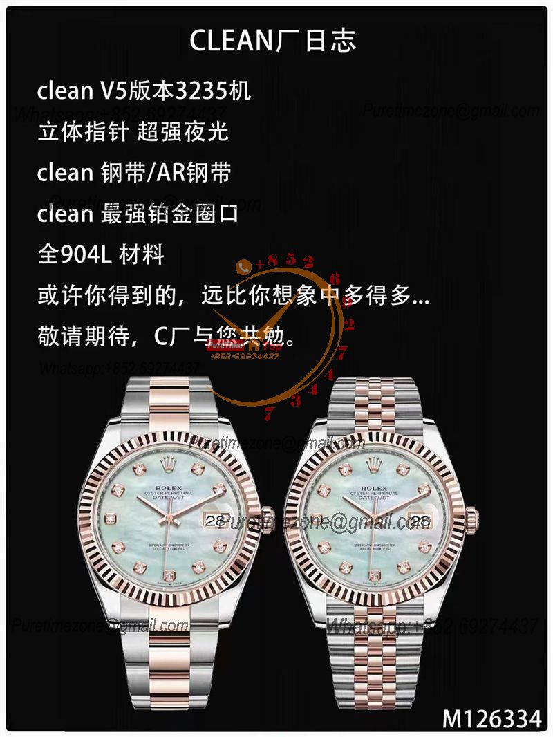 Datejust 126331 41 VR3235 Automatic Mens Watch Best Edition CLEAN RG MOP Diamonds Dial On 904L Jubilee SS Bracelet