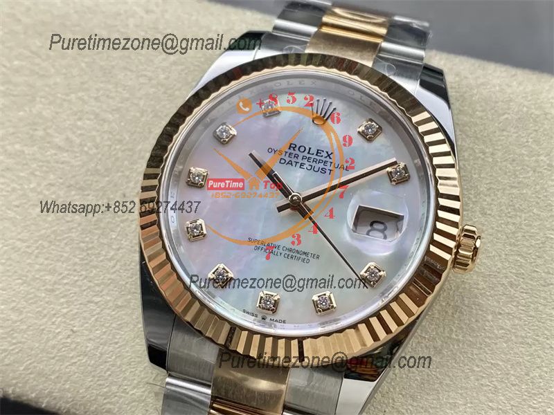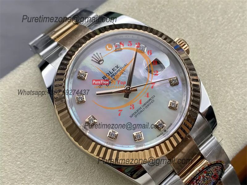 Datejust 126331 41 VR3235 Automatic Mens Watch Best Edition CLEAN RG MOP Diamonds Dial On 904L Oyster SS Bracelet