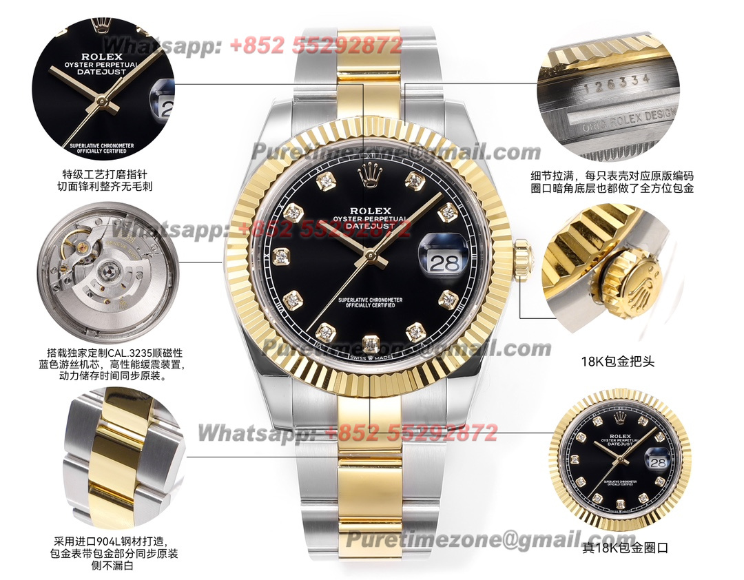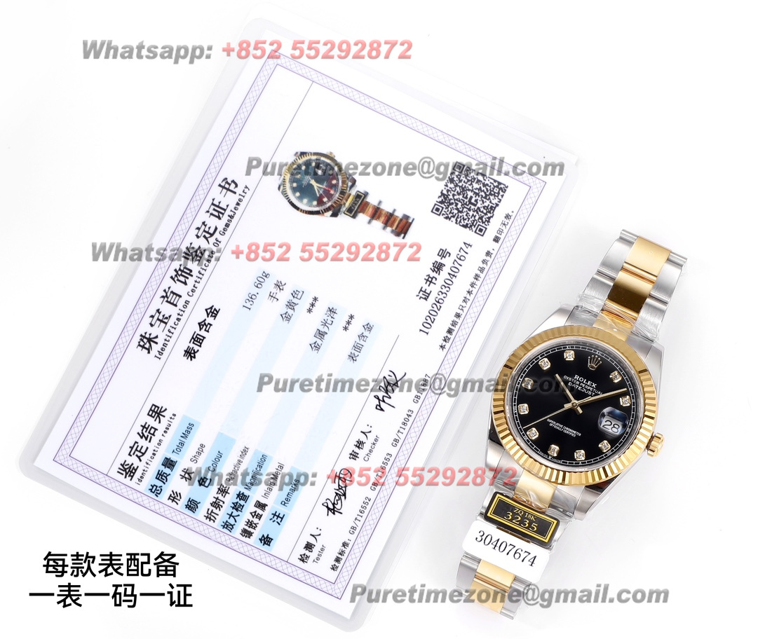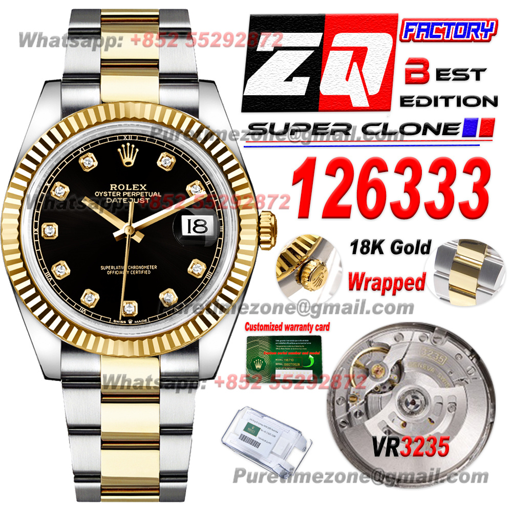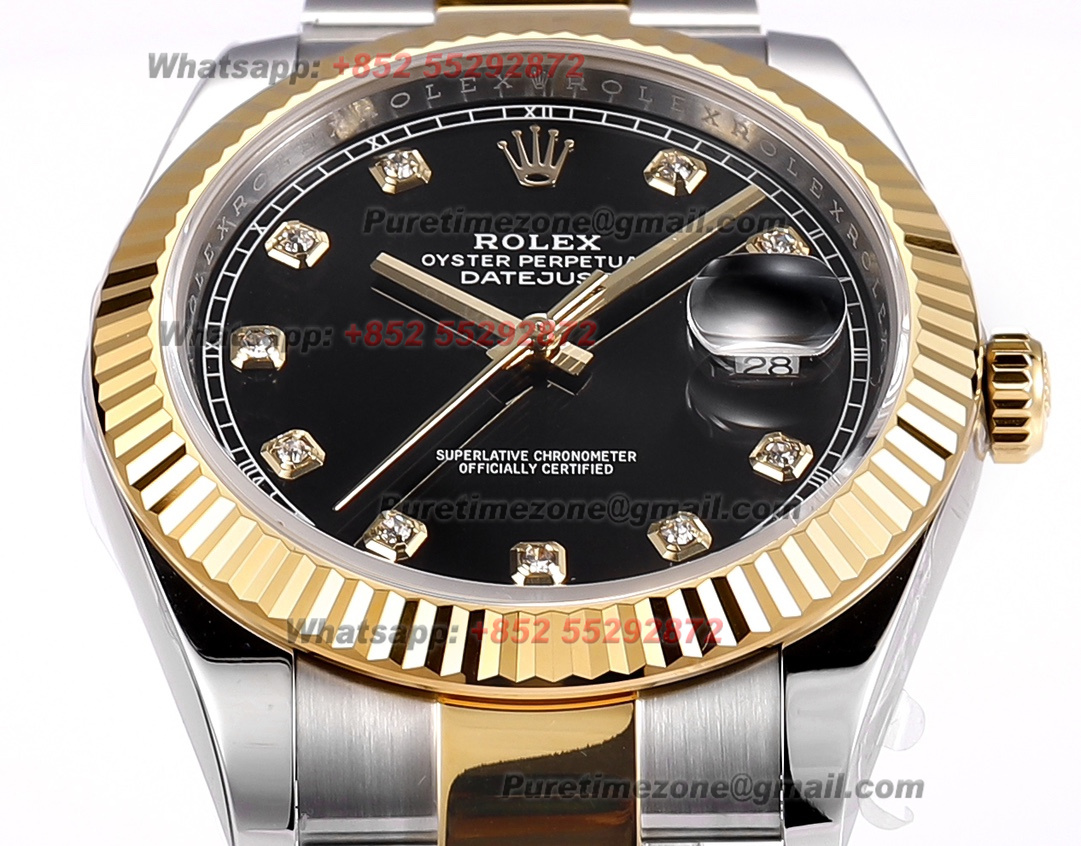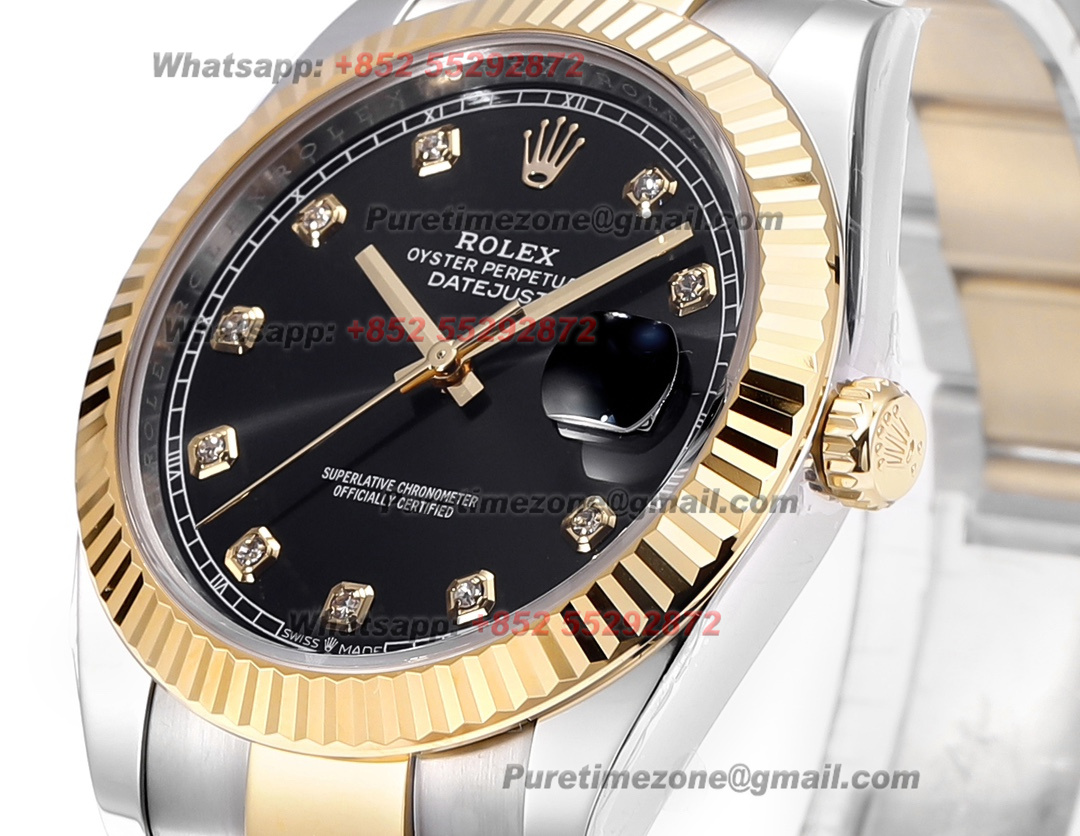 DateJust 126333 41 SS/YG Automatic Mens Watch 18k Gold Wrapped Super Clone ZQF V2 Black Diamonds Dial Oyster Bracelet VR3235