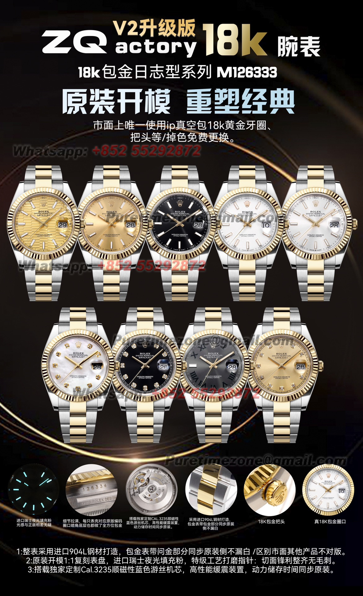 DateJust 126333 41 SS/YG Automatic Mens Watch 18k Gold Wrapped Super Clone ZQF V2 Fluted Gold Dial Jubilee Bracelet VR3235 $1,100.00 $950.00