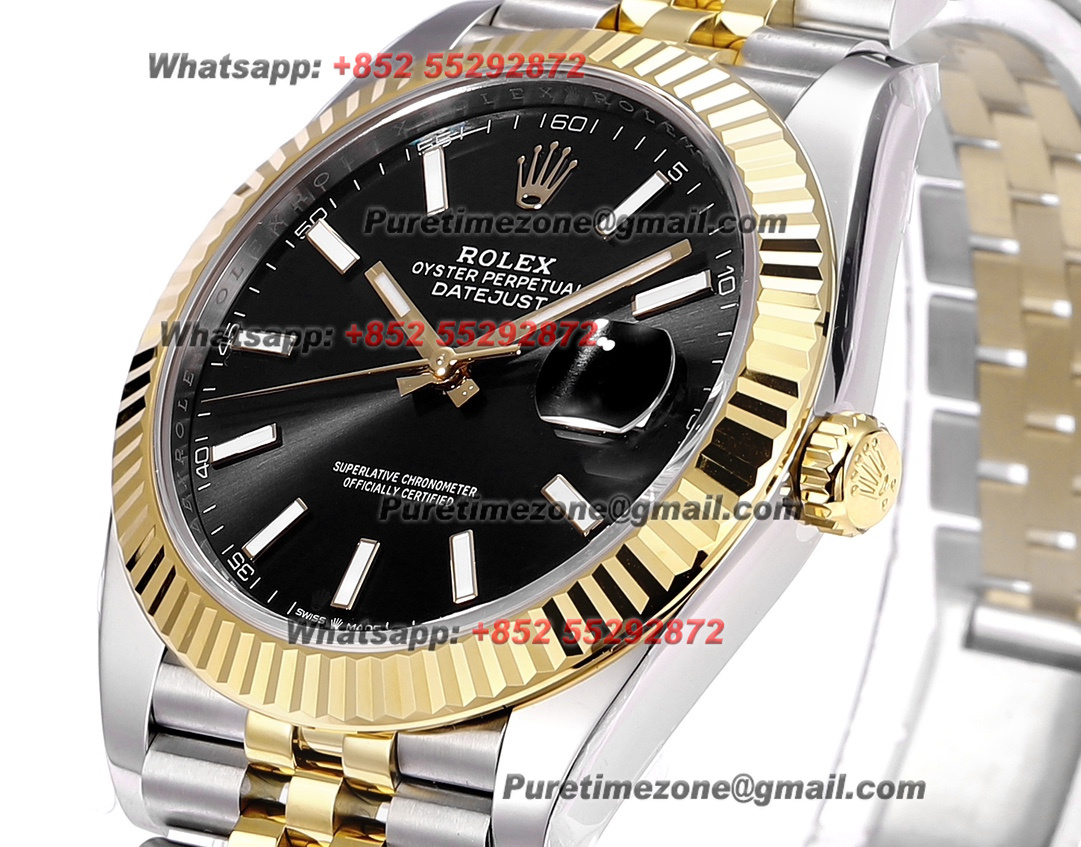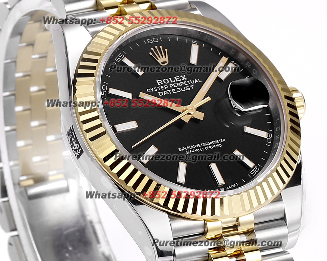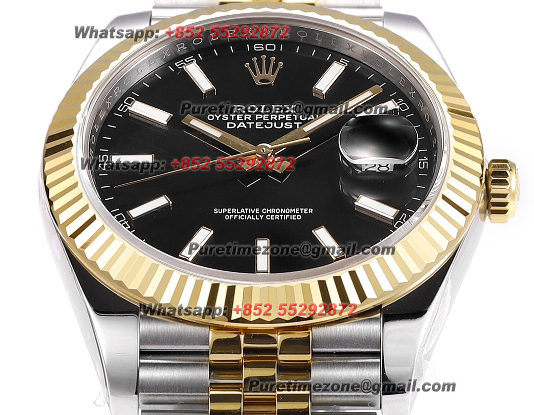 DateJust 126333 41 SS/YG Automatic Mens Watch 18k Gold Wrapped Super Clone ZQF V2 Black Stick Dial Oyster Bracelet VR3235