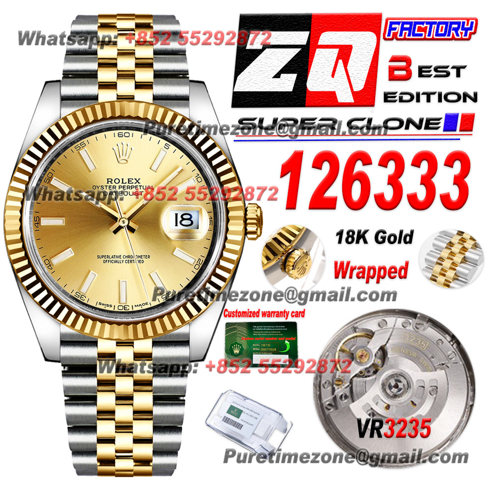 DateJust 126333 41 SS/YG Automatic Mens Watch 18k Gold Wrapped Super Clone ZQF V2 Gold Diamonds Dial Jubilee Bracelet VR3235 $1,100.00 $950.00