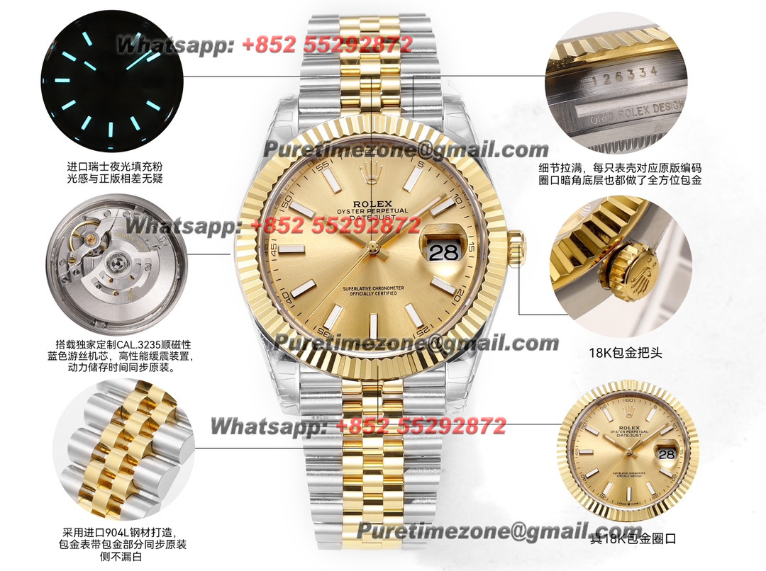 DateJust 126333 41 SS/YG Automatic Mens Watch 18k Gold Wrapped Super Clone ZQF V2 Fluted Gold Dial Oyster Bracelet VR3235