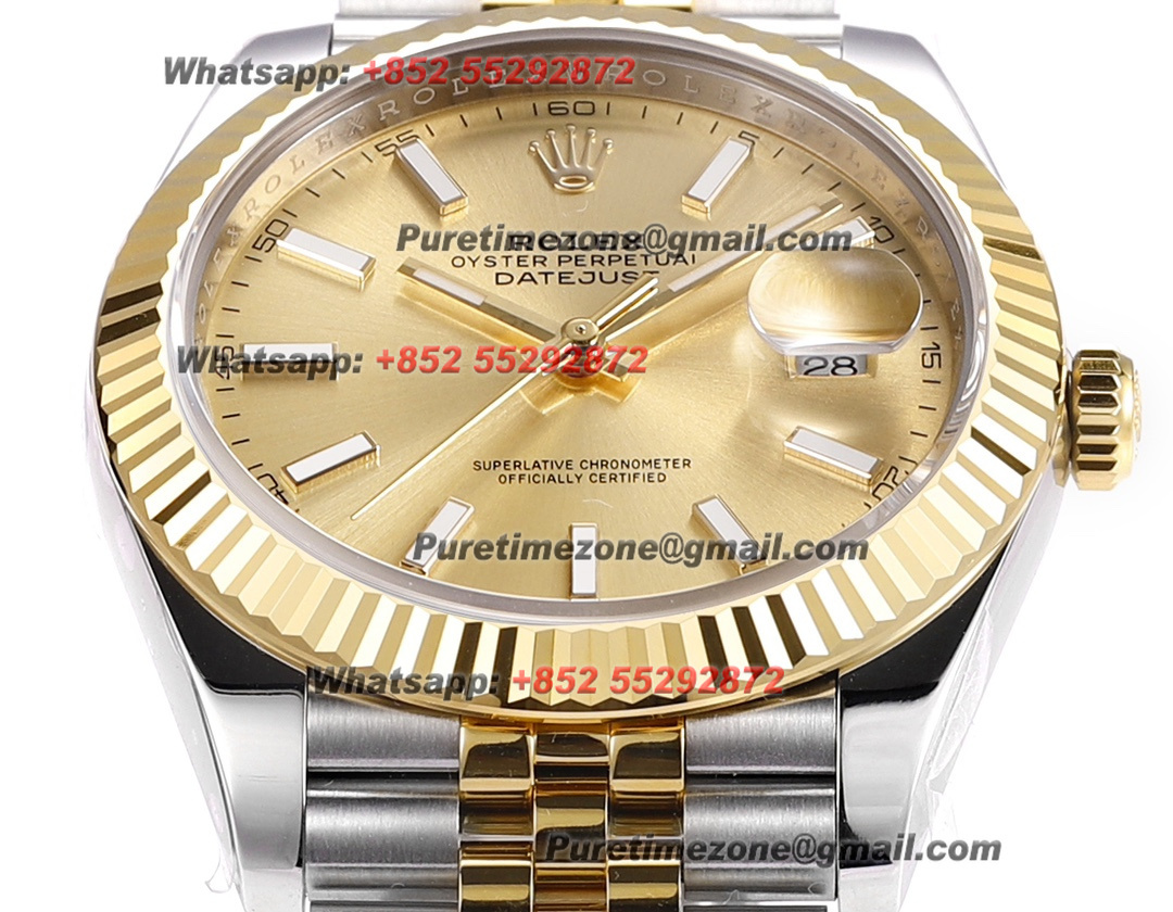 DateJust 126333 41 SS/YG Automatic Mens Watch 18k Gold Wrapped Super Clone ZQF V2 Gold Stick Dial Jubilee Bracelet VR3235