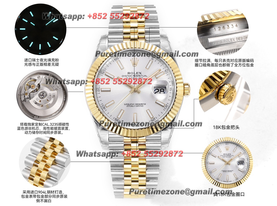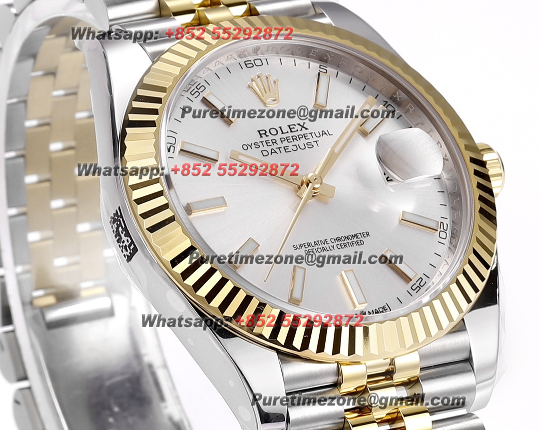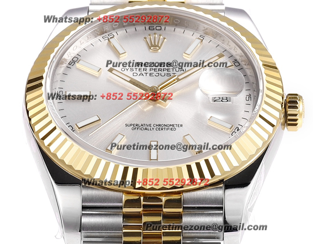 DateJust 126333 41 SS/YG Automatic Mens Watch 18k Gold Wrapped Super Clone ZQF V2 Silver Stick Dial Jubilee Bracelet VR3235