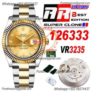 Datejust 126333 41 VR3235 Automatic Mens Watch Best Edition ARF YG Gold Diamonds Dial On 904L Oyster SS Bracelet CHS $816.00 $680.00