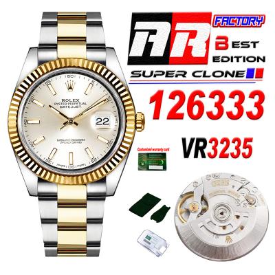 Datejust 126333 41 VR3235 Automatic Mens Watch Best Edition ARF YG Silver Dial On 904L Oyster SS Bracelet CHS