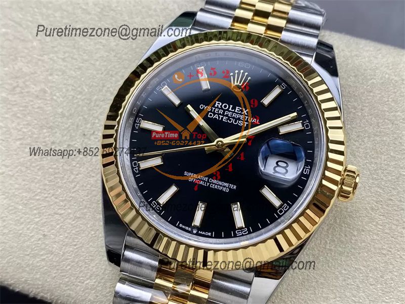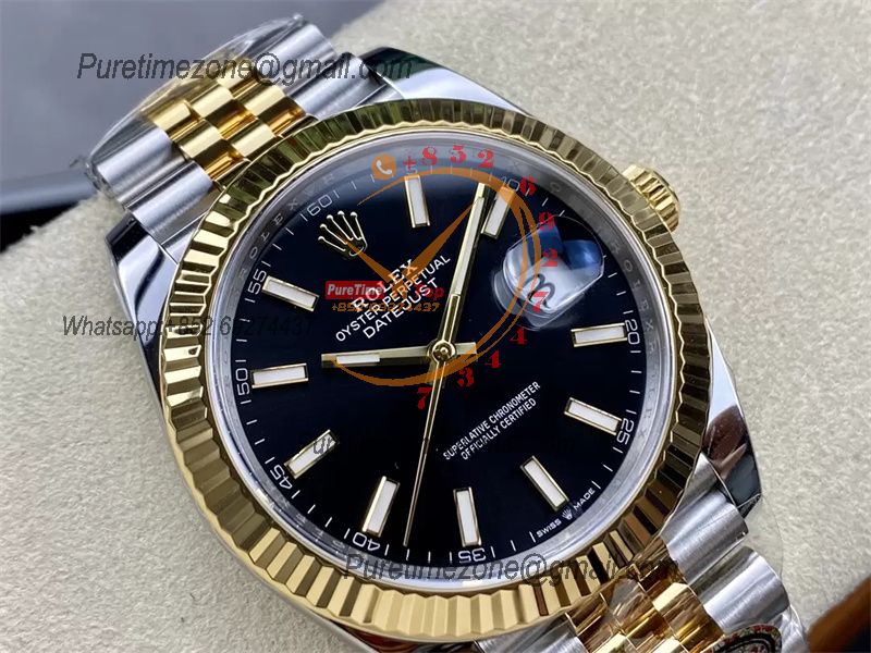 EWF Datejust 41 126331 A3235 Automatic Mens Watch Tow Tone YG Black Stick Dial SS Jubilee Bracelet Best Edition