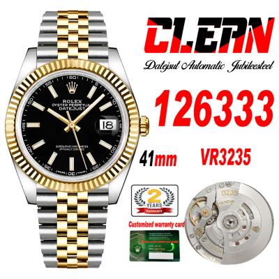Datejust 126333 41 VR3235 Automatic Mens Watch Best Edition CLEAN YG Black Stick Dial On 904L Jubilee SS Bracelet CHS