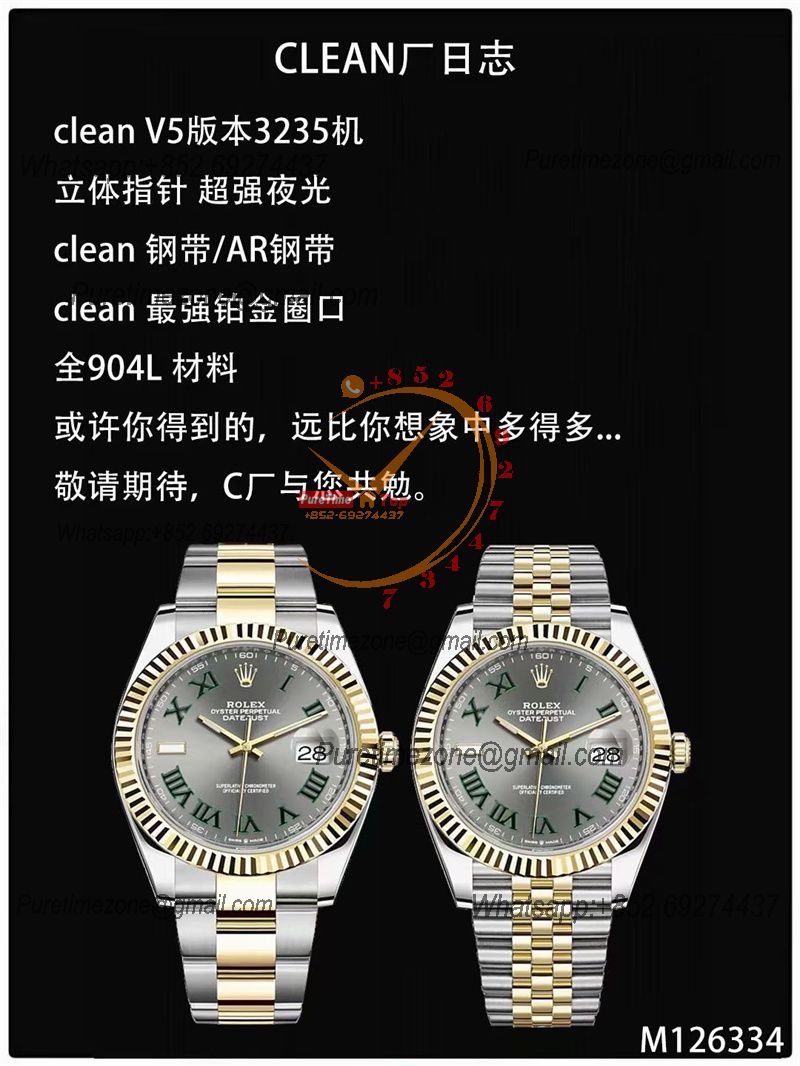 Home Rolex Datejust Datejust 126333 41 Wimbledon VR3235 Automatic Mens Watch Best Edition CLEAN YG Gray Dial On 904L Jubilee SS Bracelet CH