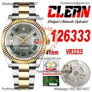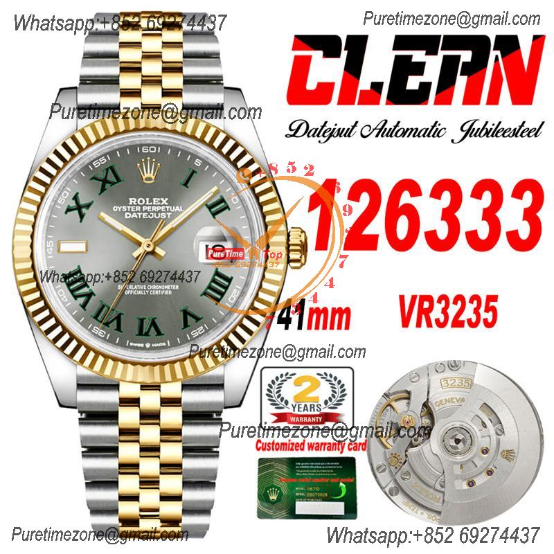 Datejust 126333 41 Wimbledon VR3235 Automatic Mens Watch Best Edition CLEAN YG Gray Dial On 904L Jubilee SS Bracelet CH
