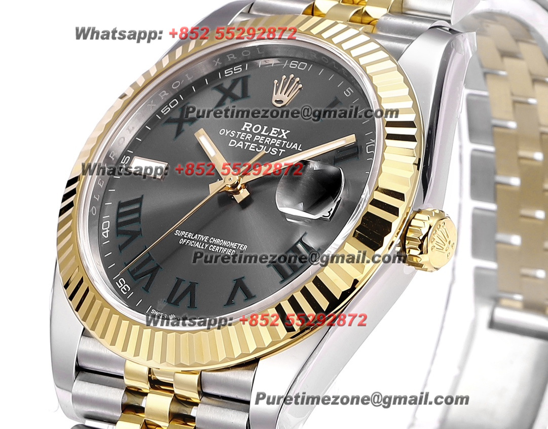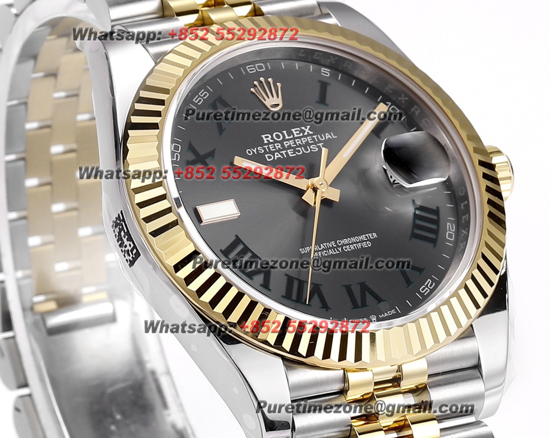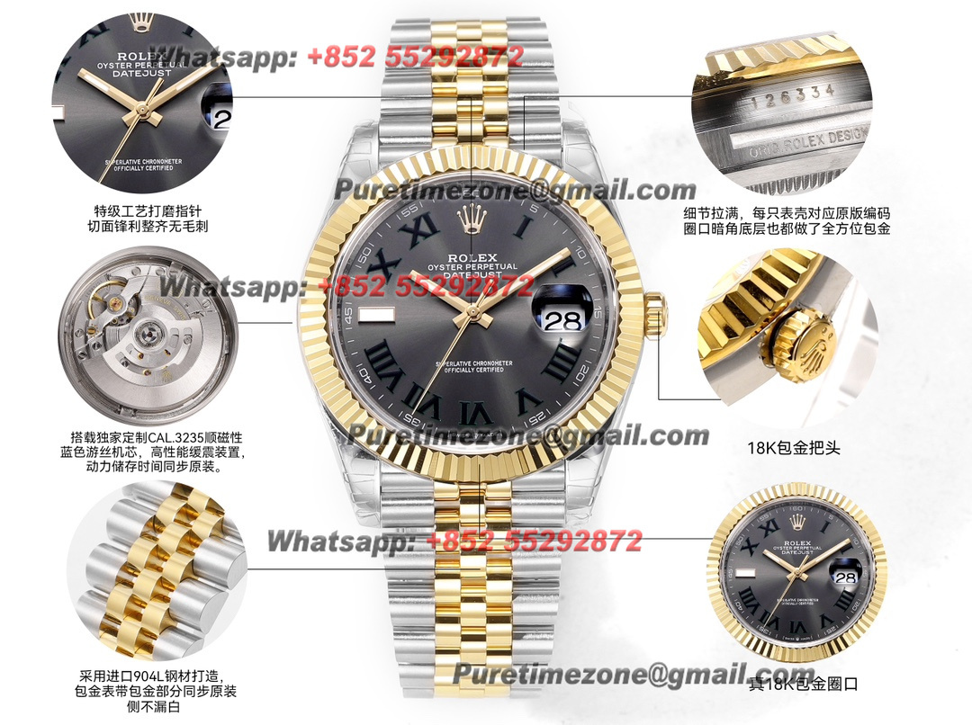 DateJust 126333 Wimbledon 41 SS/YG Automatic Mens Watch 18k Gold Wrapped Super Clone ZQF V2 Gray Dial Oyster Bracelet VR3235
