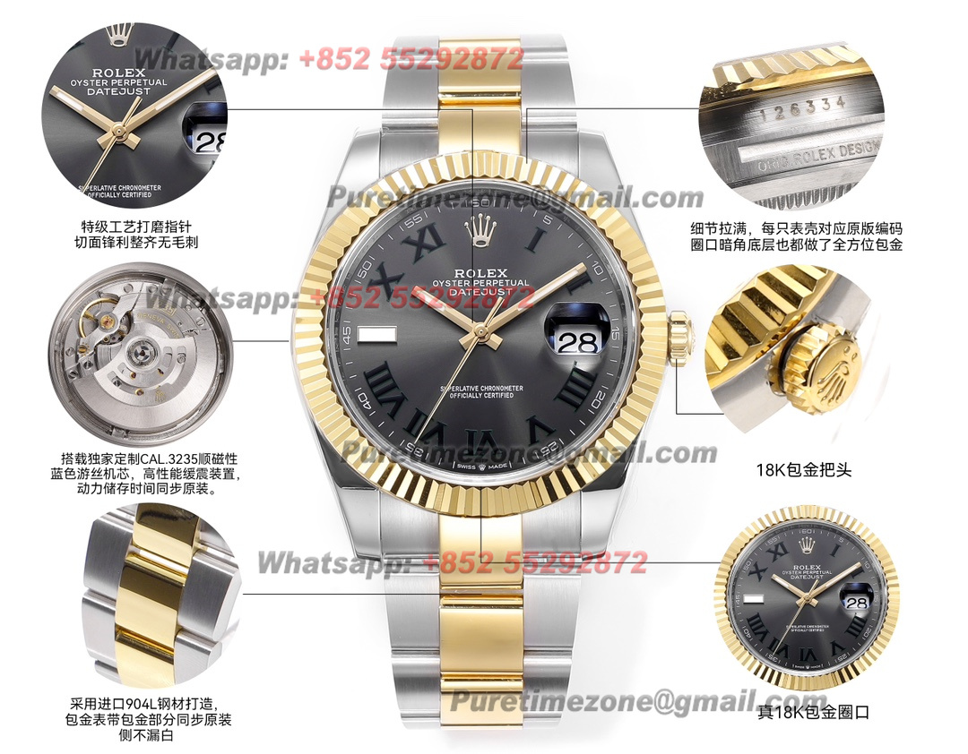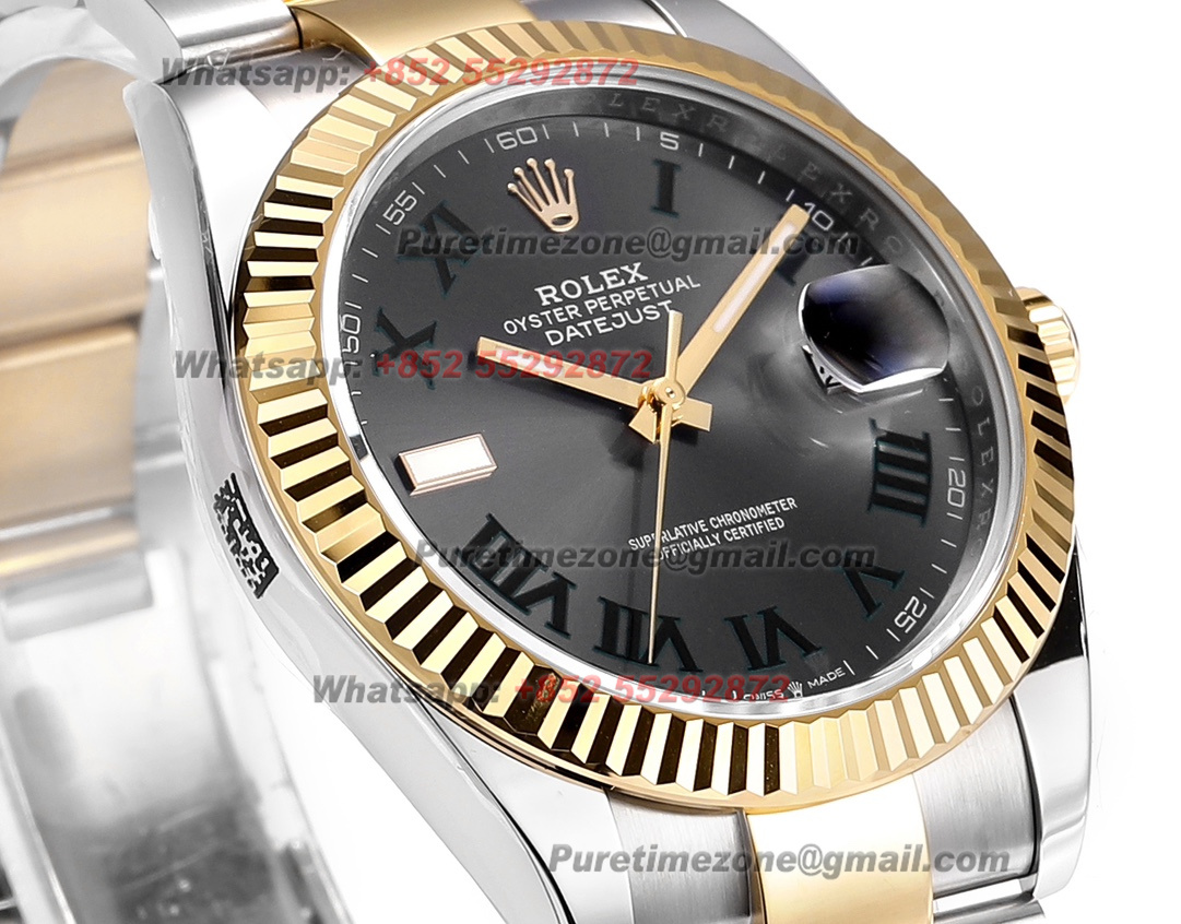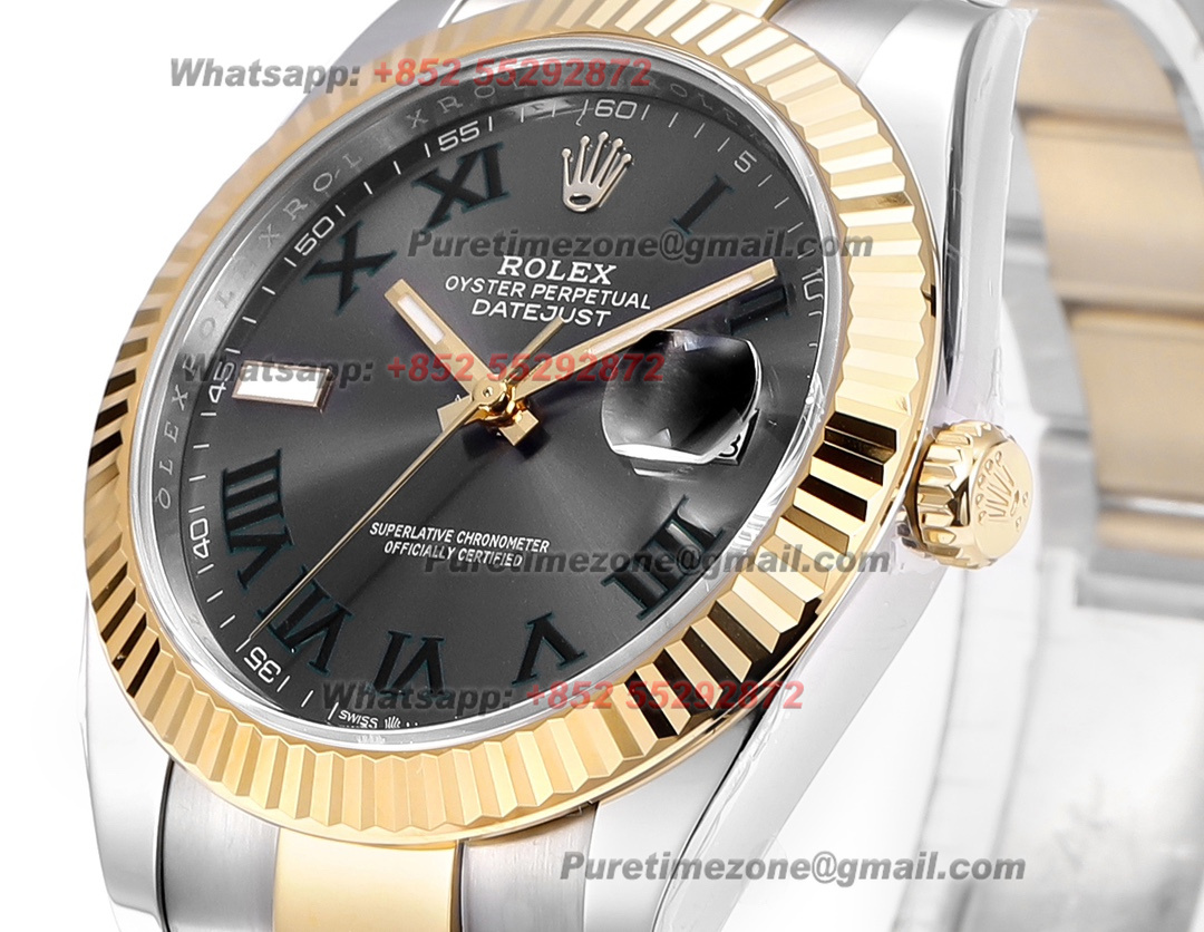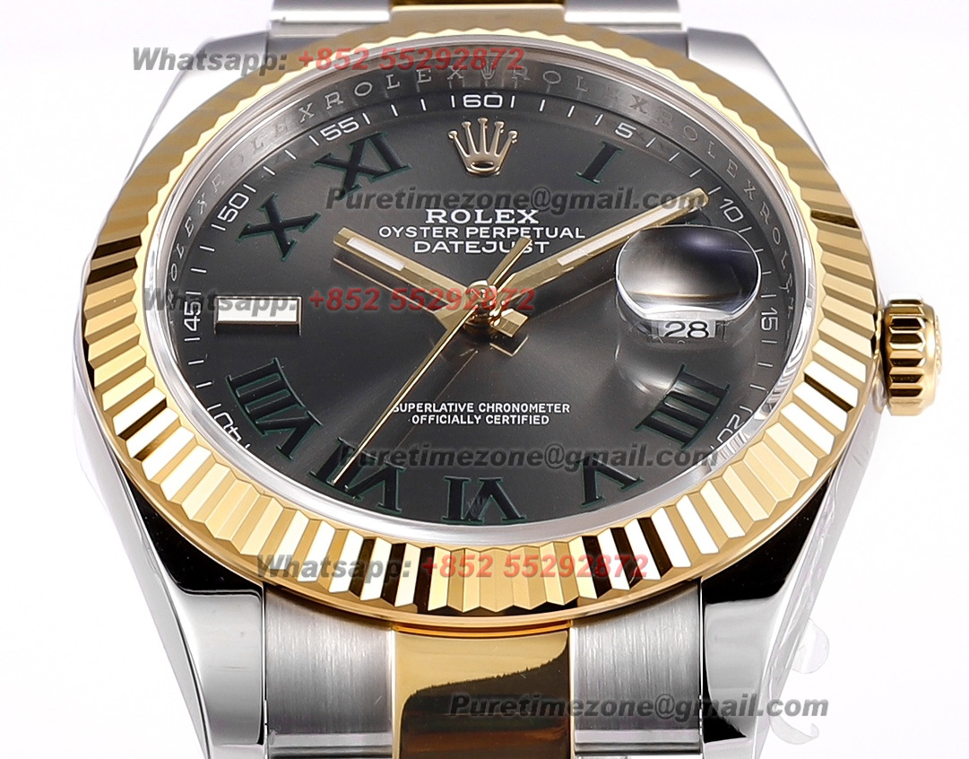 DateJust 126333 Wimbledon 41 SS/YG Automatic Mens Watch 18k Gold Wrapped Super Clone ZQF V2 Gray Dial Oyster Bracelet VR3235