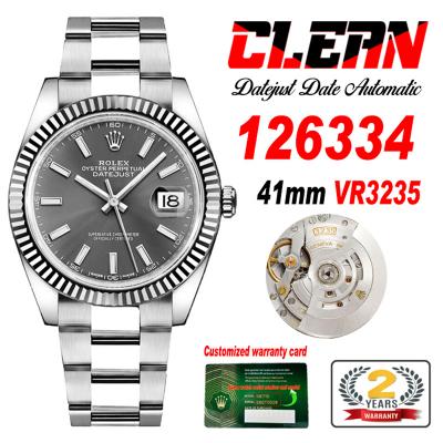Datejust 126334 41mm VR3235 Automatic Mens Watch Best Edition CLEAN Gray Stick Dial On 904L Oyster SS Bracelet CHS