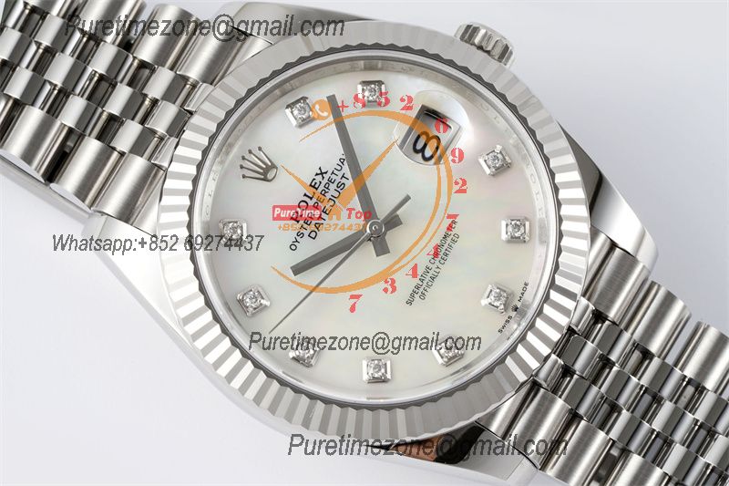 EWF Datejust 41 126334 A3235 Automatic Mens Watch MOP Diamonds Dial SS Jubilee Bracelet Best Edition
