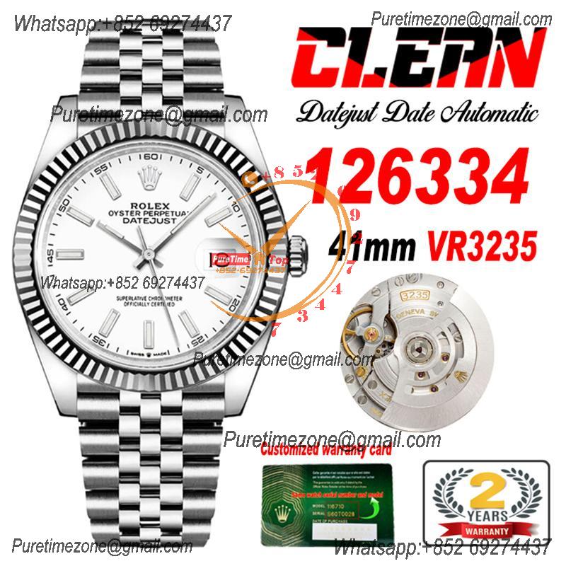 Datejust 126334 41mm VR3235 Automatic Mens Watch Best Edition CLEAN White Stick Dial On 904L Jubilee SS Bracelet CHS