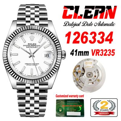 Home Rolex Datejust Datejust 126334 41mm VR3235 Automatic Mens Watch Best Edition CLEAN White Stick Dial On 904L Jubilee SS Bracelet CHS