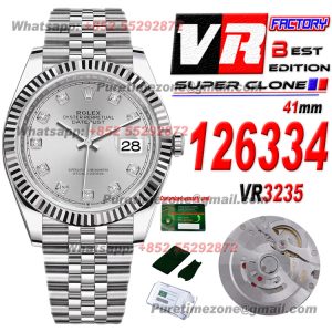 Datejust 126334 Automatic Mens Watch Super Clone VRF 41 Silver Diamonds Dial Jubilee Bracelet VR3235 CHS $600.00 $500.00