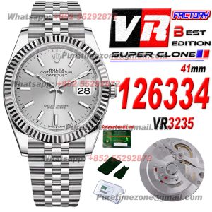 Datejust 126334 Automatic Mens Watch Super Clone VRF 41 Black Stick Dial Jubilee Bracelet VR3235 CHS