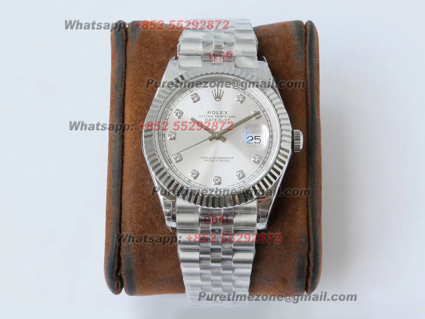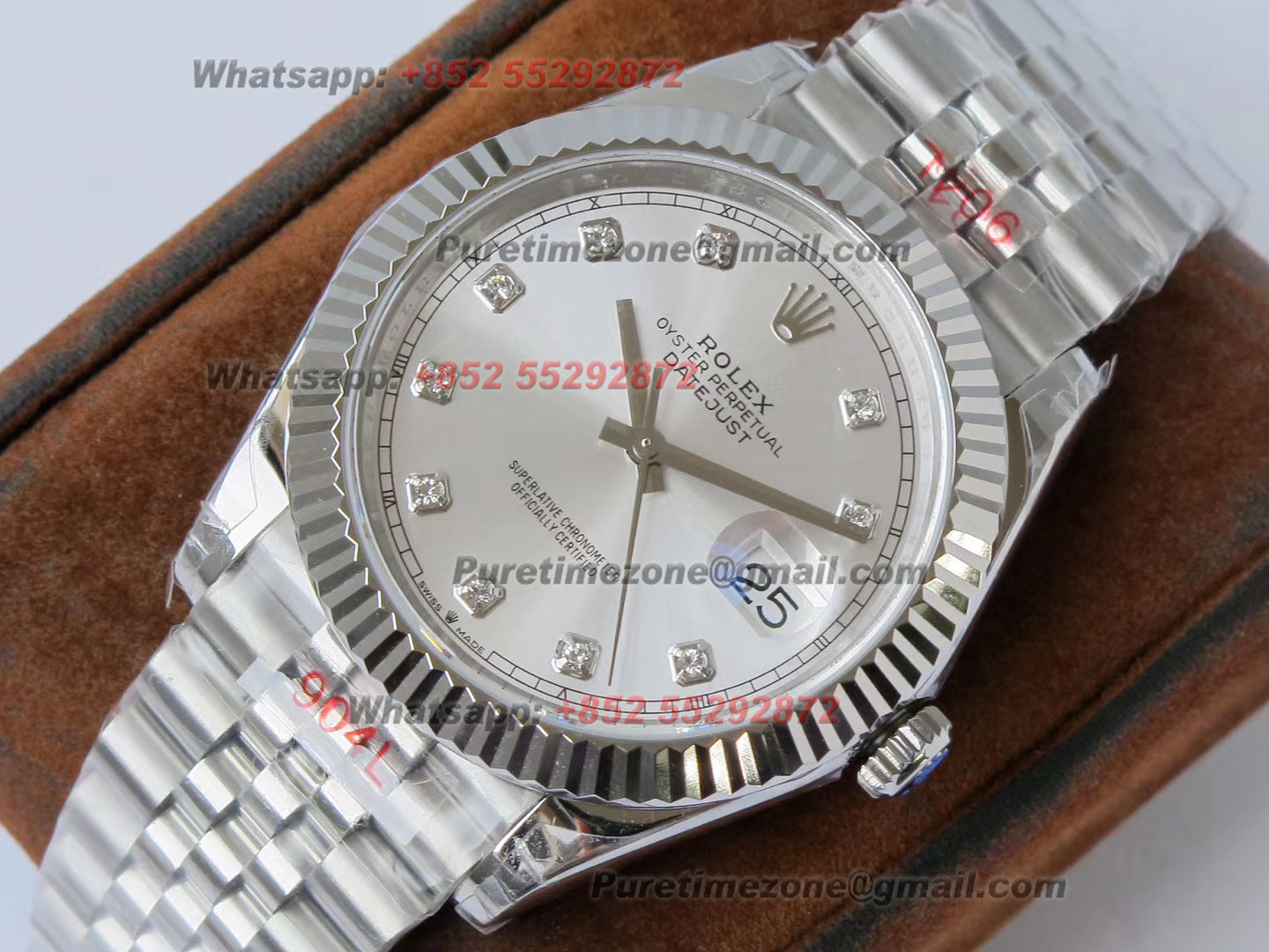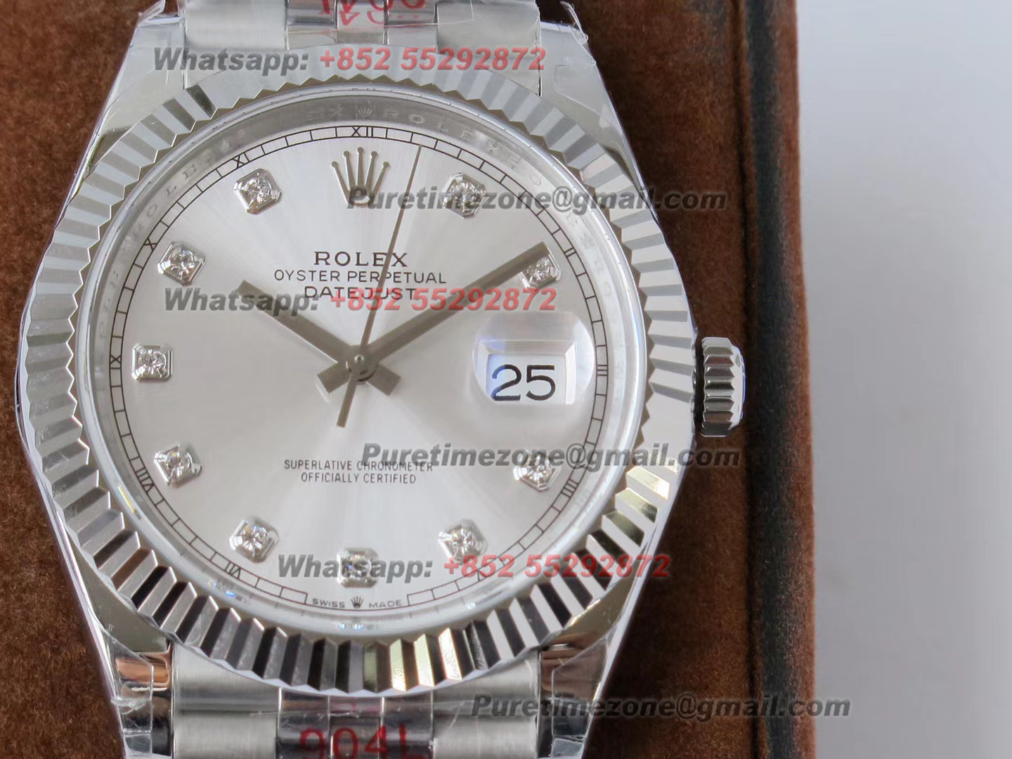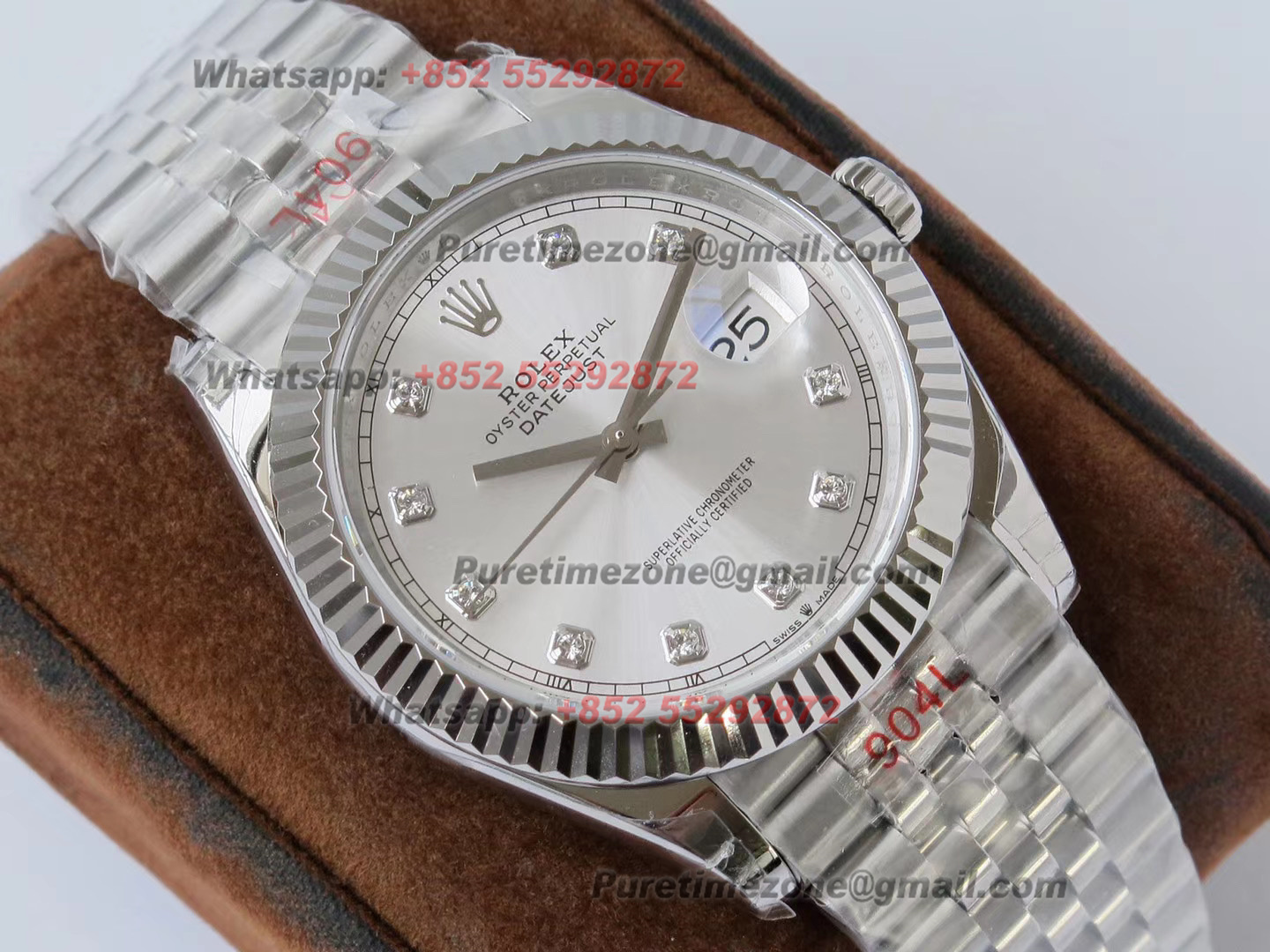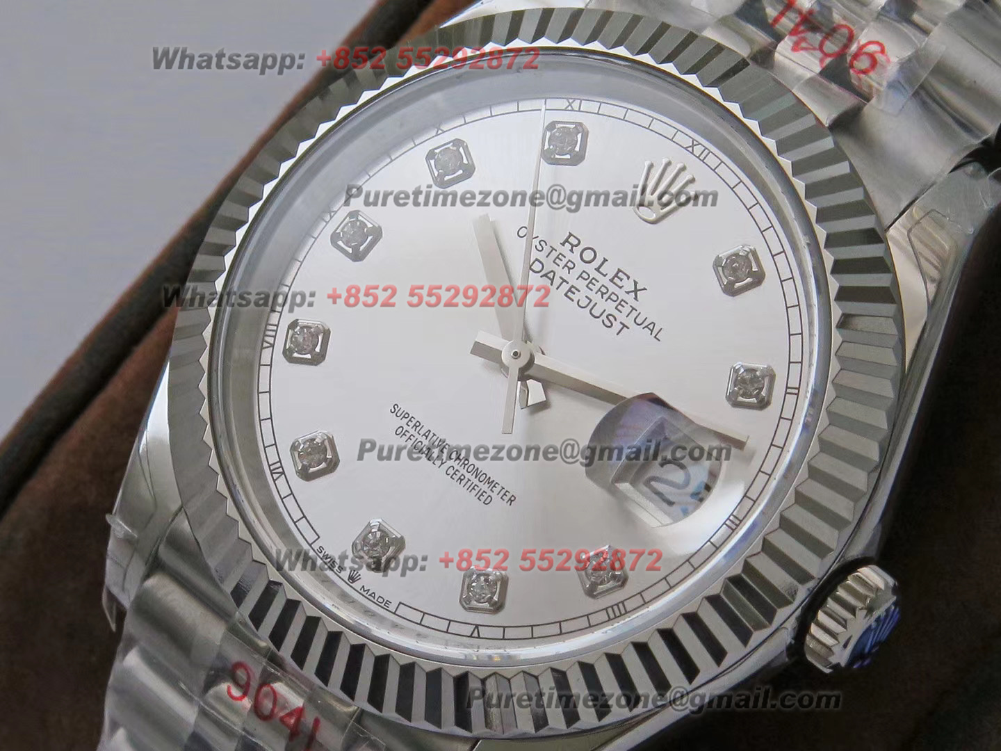 Datejust 126334 Automatic Mens Watch Super Clone VRF 41 Silver Diamonds Dial Jubilee Bracelet VR3235 CHS
