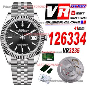 Datejust 126334 Automatic Mens Watch Super Clone VRF 41 Black Stick Dial Jubilee Bracelet VR3235 CHS $600.00 $500.00