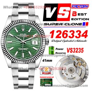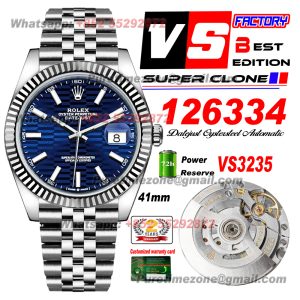 Datejust 126334 Automatic Mens Watch Super Clone VSF 41 Fluted Blue Dial 904L Steel Oyster Bracelet CHS VS3235