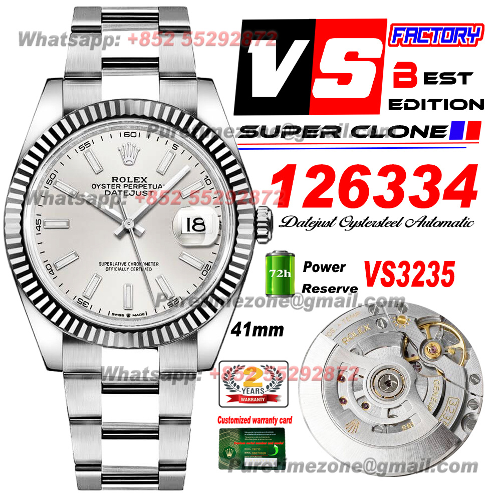 Datejust 126334 Automatic Mens Watch Super Clone VSF 41 Silver Dial 904L Steel Oyster Bracelet CHS VS3235