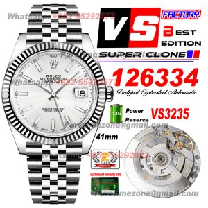 Be the first to review “Datejust 126334 Automatic Mens Watch Super Clone VSF 41 Silver Dial 904L Steel Oyster Bracelet CHS VS3235” Cancel reply