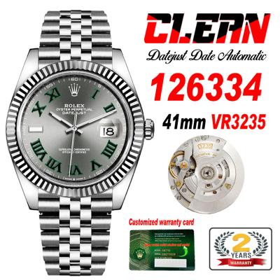 Datejust 126334 Wimbledon 41mm VR3235 Automatic Mens Watch Best Edition CLEAN Gray Dial On 904L Jubilee SS Bracelet CHS