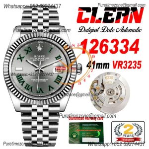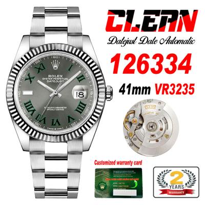 Datejust 126334 Wimbledon 41mm VR3235 Automatic Mens Watch Best Edition CLEAN Gray Dial On 904L Oyster SS Bracelet CHS