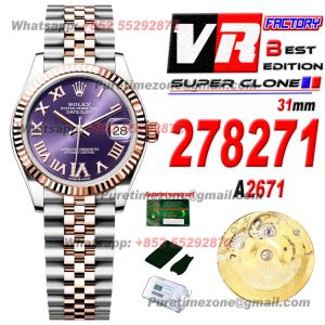 Datejust 278271 SS/RG Automatic Womens Watch Super Clone VRF 31 Champagne Diamonds Dial Jubilee Bracelet Ladies A2671