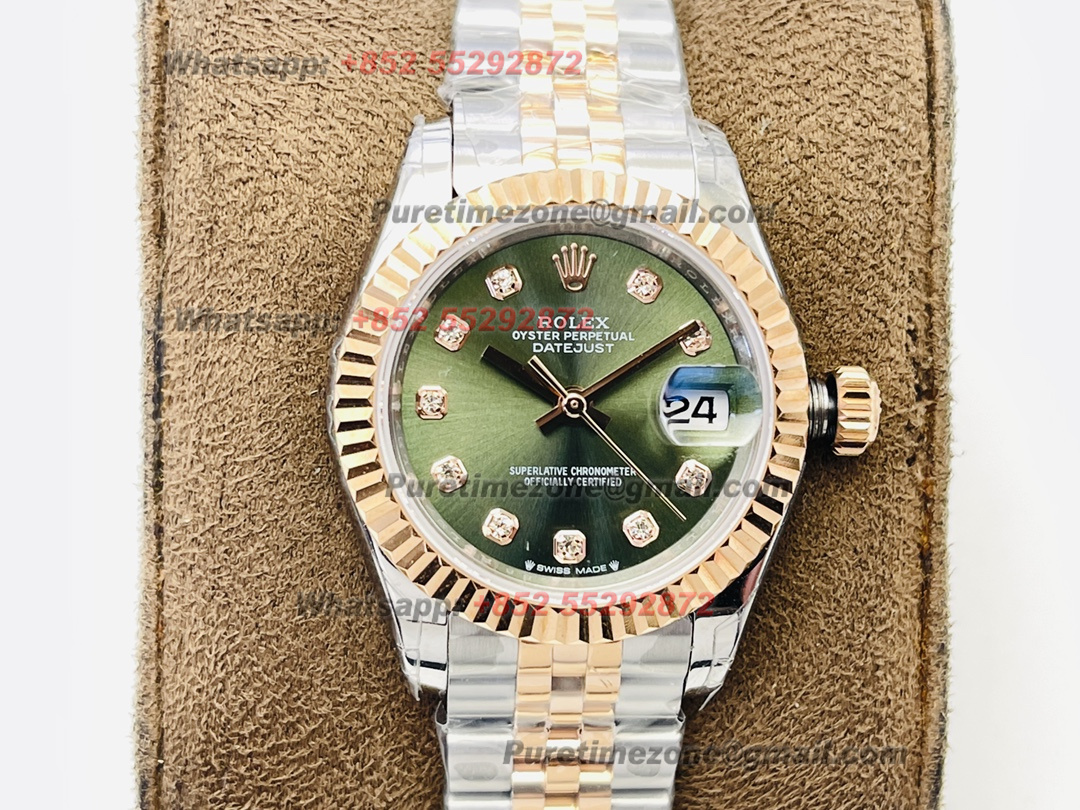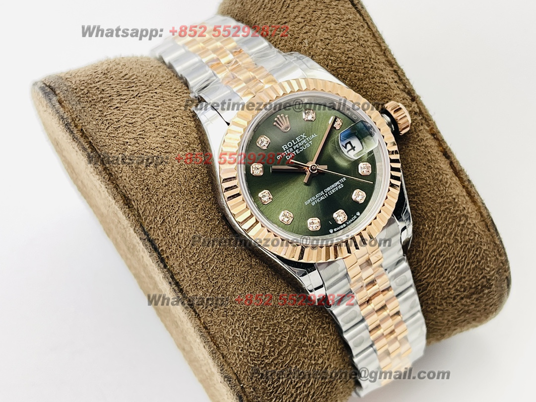 Datejust 278271 SS/RG Automatic Womens Watch Super Clone VRF 31 Green Diamonds Dial Jubilee Bracelet Ladies A2671