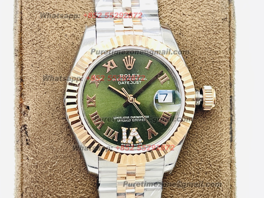 Datejust 278271 SS/RG Automatic Womens Watch Super Clone VRF 31 Green Roman VI Dial Jubilee Bracelet Ladies A2671