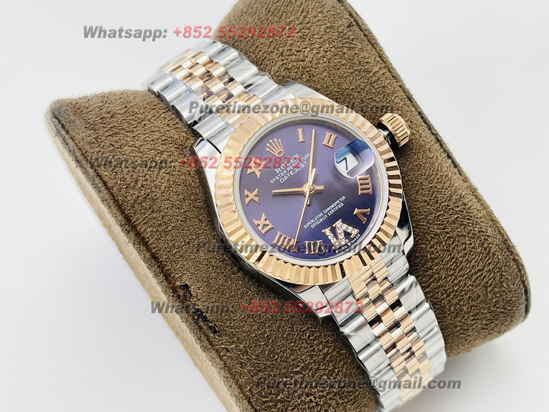 Datejust 278271 SS/RG Automatic Womens Watch Super Clone VRF 31 Pruple Roman VI Dial Jubilee Bracelet Ladies A2671