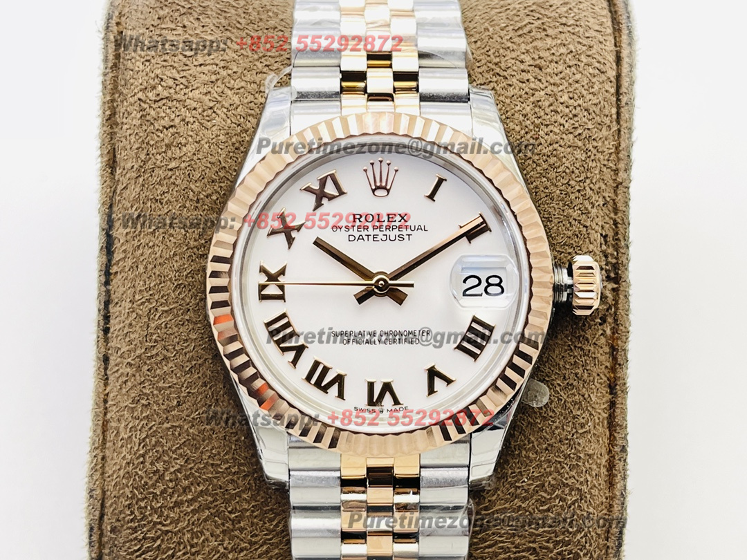 Datejust 278271 SS/RG Automatic Womens Watch Super Clone VRF 31 White Roman Dial Jubilee Bracelet Ladies A2671