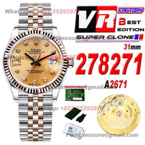 Datejust 278271 SS/RG Automatic Womens Watch Super Clone VRF 31 White Roman Dial Jubilee Bracelet Ladies A2671