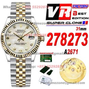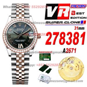 Datejust 278273 SS/YG Automatic Womens Watch Super Clone VRF 31 Black Roman VI Dial Jubilee Bracelet Ladies A2671